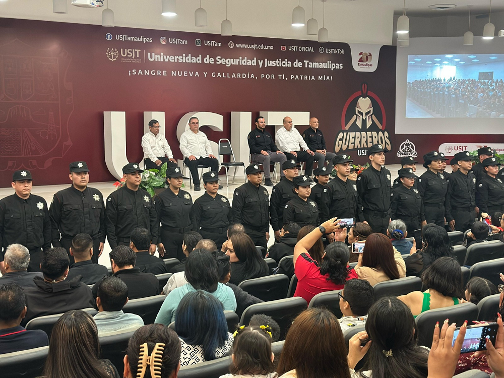 Durante la graduación de 36 nuevos policías de proximidad social quienes representan en total 689 nuevos elementos de la Guardia Estatal en el actual gobierno, y ante la presencia del subsecretario de Ejecución de Sanciones, Juan Antonio Sánchez Ruiz; del coordinador de la Guardia Estatal, Enrique Nieto Gutiérrez y del rector de la USJT, Willy Zúñiga Castillo, el titular de la SSPT agradeció a nombre del gobernador, la confianza de quienes se incorporan a las filas de esta corporación y a sus familias también presentes, para emprender acciones a fin de que la sociedad tamaulipecas pueda vivir en paz y en armonía.