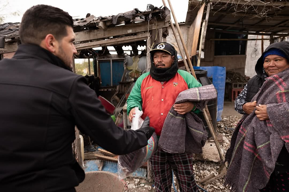 H. Matamoros, Tamaulipas.- El alcalde Alberto Granados Fávila encabezó la entrega de cobijas y kits invernales a cientos de habitantes de la zona pesquera de Higuerillas; con estas acciones se reafirma el compromiso de liderar una administración cercana a los matamorenses, de poco escritorio y más territorio.