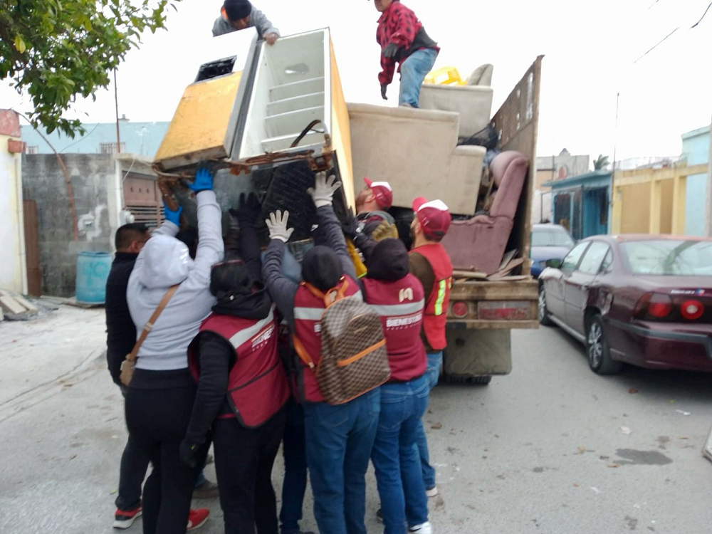 H. Matamoros, Tamaulipas.- A través del programa Descacharrización para el Bienestar, implementado por la Presidencia Municipal de Matamoros, se logró la recolección de aproximadamente 14 toneladas de desechos en el fraccionamiento Valle Real mediante 9 viajes de traslado.
