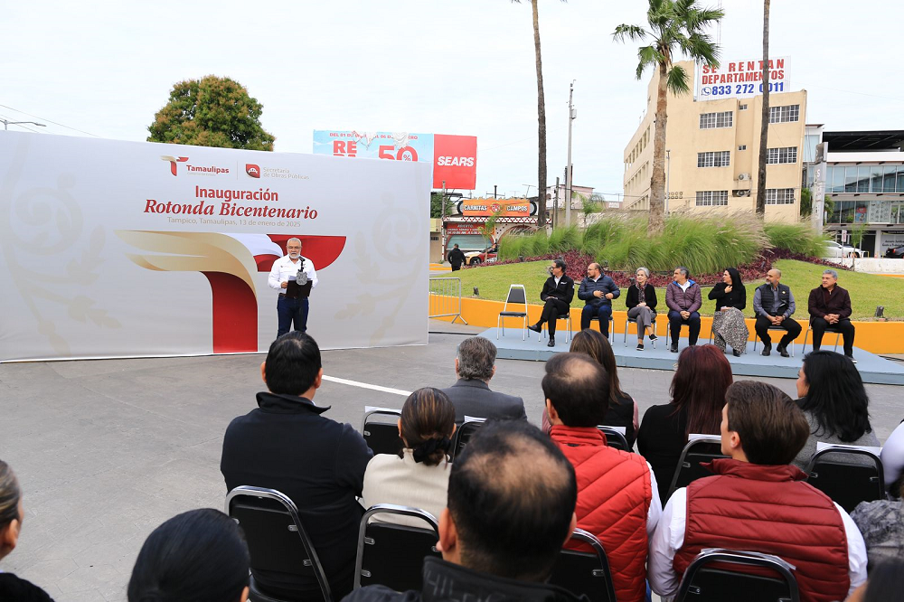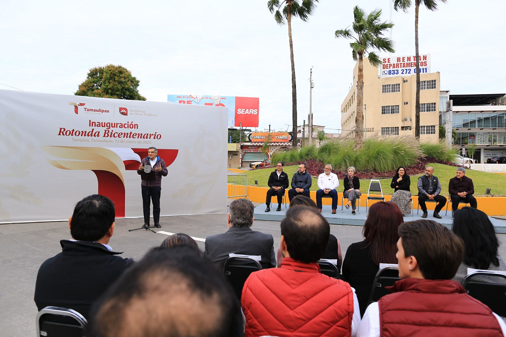 Al inaugurar la Glorieta Bicentenario, ubicada en los bulevares López Mateos y Fidel Velázquez de este puerto de Tampico, el mandatario estatal, quien estuvo acompañado de la presidenta del DIF Estatal, María de Villarreal y la presidenta municipal, Mónica Villarreal Anaya, señaló que, aplicando estos principios, han realizado obras en beneficio de las y los tamaulipecos.