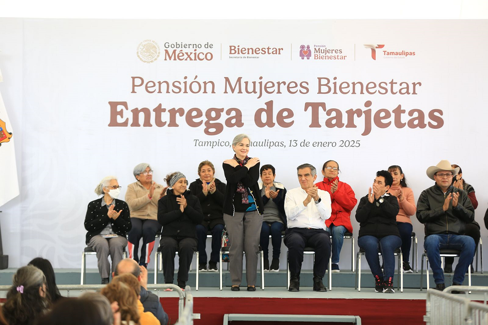 Junto al delegado de Bienestar Federal, Luis Lauro Reyes Rodríguez, el gobernador entregó la tarjeta de la Pensión Mujeres Bienestar a seis representantes de Tampico, Madero y Altamira, y aseguró que este programa es un acto de justicia a las mujeres de más de 60 años por su dedicación al cuidado de sus familias.