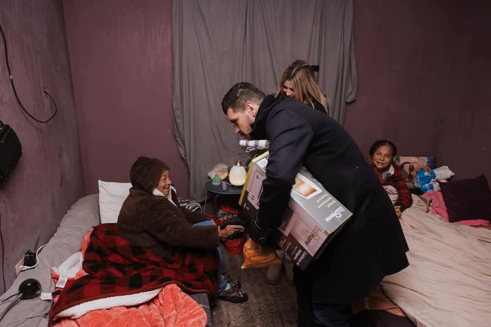 Matamoros, Tamaulipas. Esta noche, el alcalde de Matamoros, Alberto Granados Fávila, en coordinación con el Sistema DIF Matamoros y su presidenta, Anita Ariceaga de Granados, llevaron a cabo una jornada de entrega de apoyos destinados a adultos mayores en situación vulnerable, como parte de las acciones para mitigar las bajas temperaturas que afectan a la ciudad.