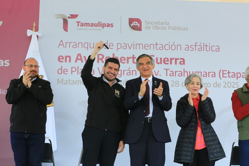 Como parte de su gira de trabajo, Villarreal Anaya dio el banderazo de inicio a la pavimentación asfáltica de la avenida Roberto Guerra, de playa Villagrán a la avenida Tarahumara, con un importe asignado de 38 millones 336 mil 533 pesos, en beneficio de más de 23 mil matamorenses.
