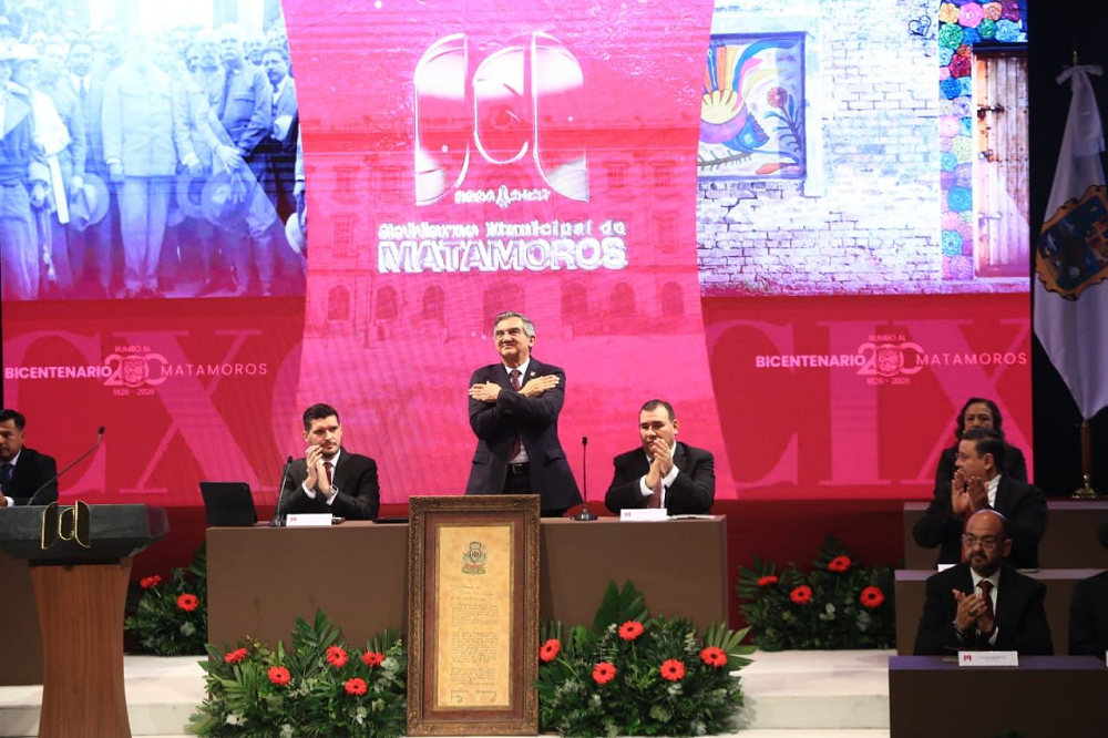 Durante la sesión solemne del cabildo matamorense, encabezada por el alcalde José Alberto Granados Favila, en el Teatro Reforma, el gobernador destacó la importancia y grandeza de Matamoros y su sociedad que a lo largo de dos siglos ha sido verdaderamente heroica.