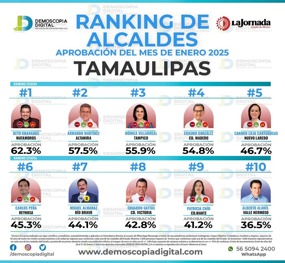 Esta acción virulenta solo demuestra lo desesperado que se encuentra el PAN en Tamaulipas, el que va en caída libre, cada vez se hunde en el desprecio de la sociedad tamaulipeca; mientras que los gobiernos morenistas, tanto estatal como municipal van en crecimiento y con una amplía aprobación, como el caso de Beto Granados, que en la reciente evaluación de Demoscopia Digital, sobre la aprobación del Ranking de Alcaldes, el Presidente Municipal de Matamoros aparece en primer lugar.
