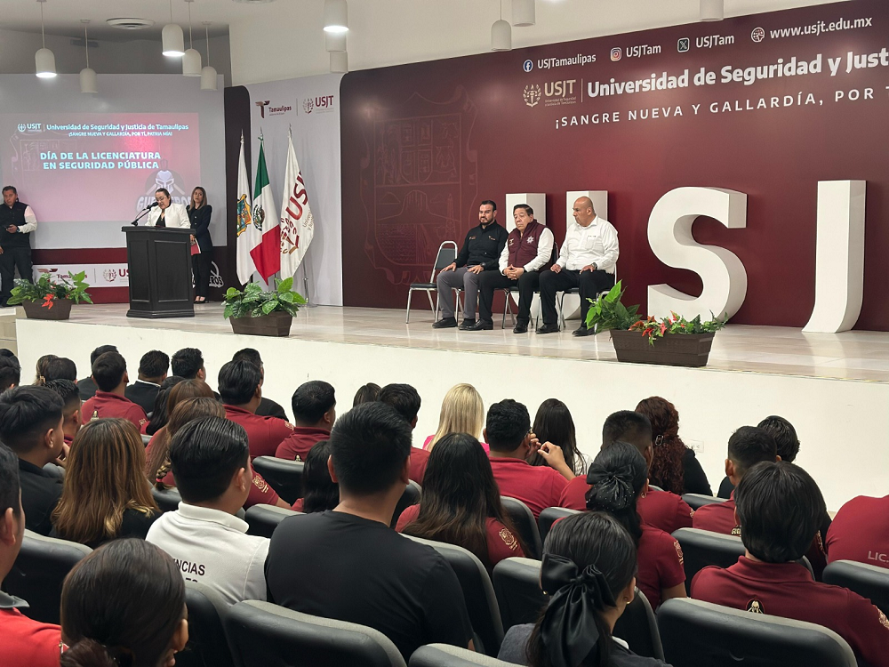Ciudad Victoria, Tamaulipas.- Con un reconocimiento de parte del gobernador Américo Villarreal Anaya por haber elegido estudiar esta carrera, el secretario de Seguridad Pública, Sergio Hernando Chávez García, presidió la primera conmemoración del Día de la Seguridad Pública.