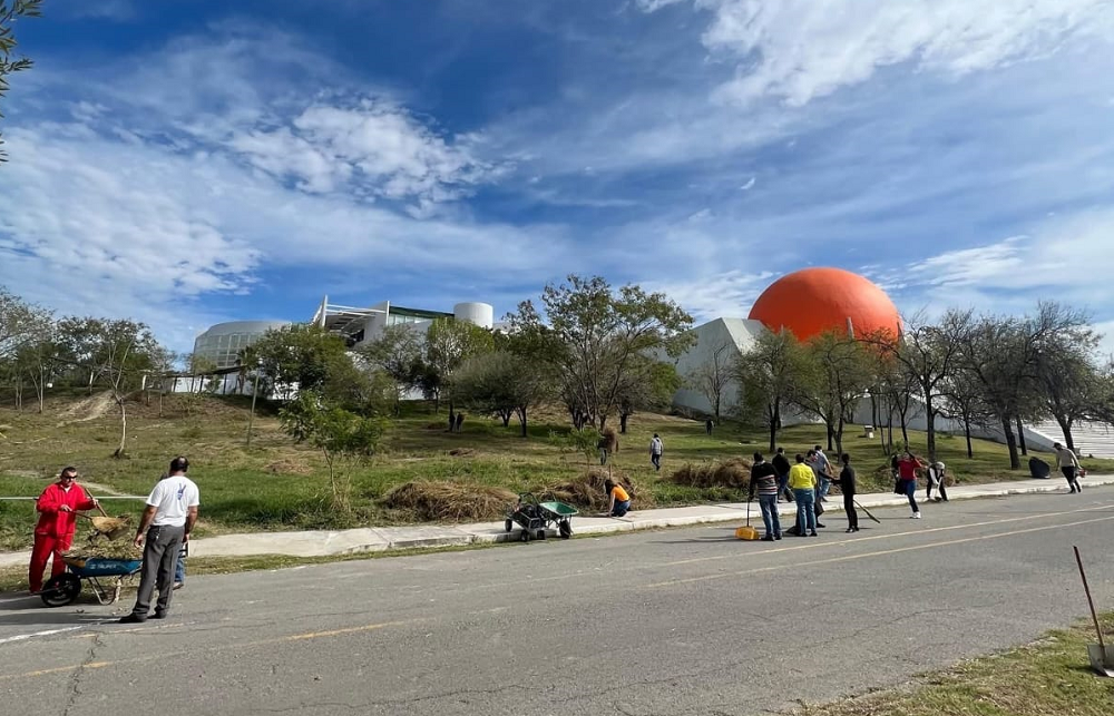 Ciudad Victoria, Tamaulipas.- Personal del Museo de Historia Natural (TAMUX), el Planetario “Dr. Ramiro Iglesias Leal” y la Unidad Deportiva Siglo XXI, realizaron labores de limpieza en jardines, banquetas y cordones.