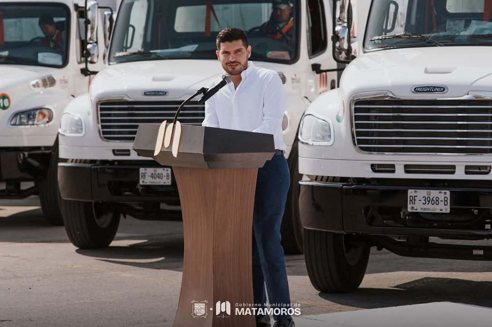 Matamoros, Tamaulipas. El alcalde Alberto Granados encabezó esta tarde la entrega de 20 nuevos camiones compactadores a la Dirección de Limpieza Pública Municipal, fortaleciendo la capacidad de recolección en las 530 colonias de la ciudad. Con esta incorporación, la flota vehicular alcanza un total de 40 unidades en operación, distribuidas en 25 rutas en los tres turnos de servicio.