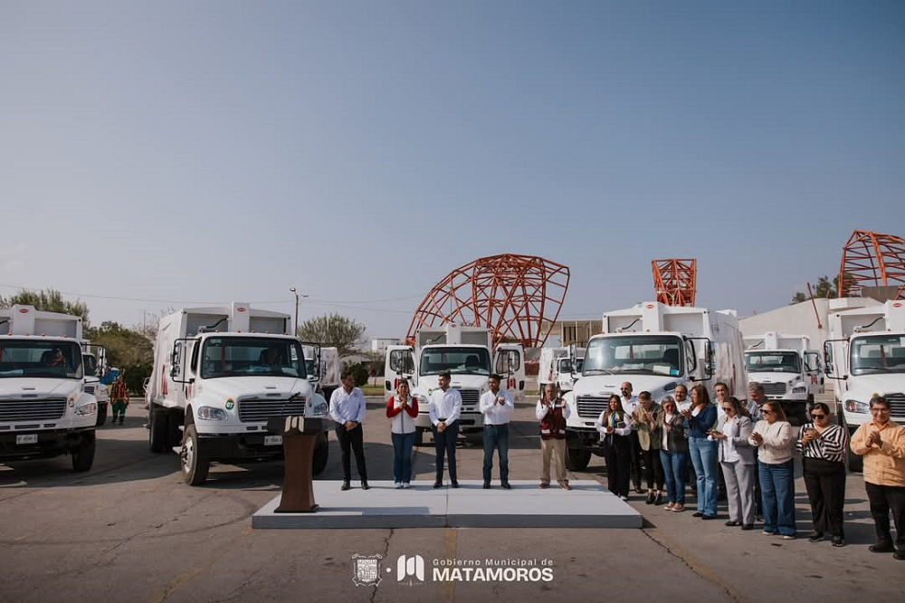 Matamoros, Tamaulipas. El alcalde Alberto Granados encabezó esta tarde la entrega de 20 nuevos camiones compactadores a la Dirección de Limpieza Pública Municipal, fortaleciendo la capacidad de recolección en las 530 colonias de la ciudad. Con esta incorporación, la flota vehicular alcanza un total de 40 unidades en operación, distribuidas en 25 rutas en los tres turnos de servicio.