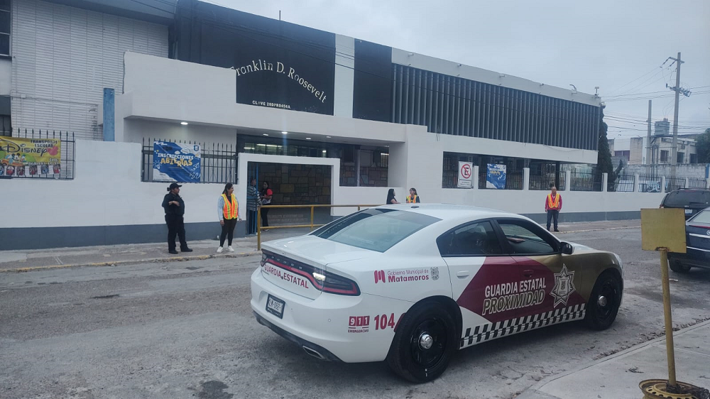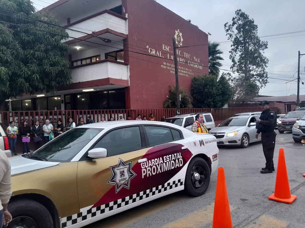 Matamoros, Tamaulipas.- Con el objetivo de reforzar la seguridad en los planteles educativos, la Policía de Proximidad de Matamoros puso en marcha este martes 4 de febrero el Operativo Escuela Segura.