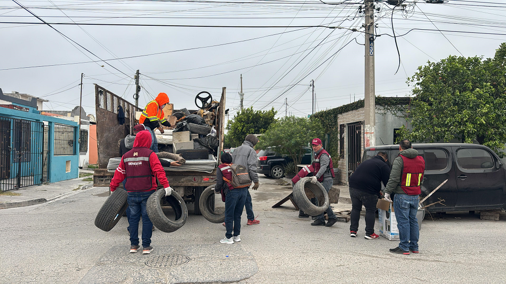 H. Matamoros, Tamaulipas.- A través del programa Descacharrización para el Bienestar, implementado por la Presidencia Municipal de Matamoros, se logró la recolección de aproximadamente 14 toneladas de desechos en el fraccionamiento Valle Real mediante 9 viajes de traslado.