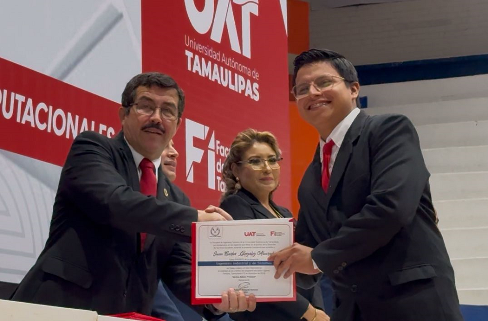 Acompañado por el director de la Facultad de Ingeniería Tampico, Roberto Pichardo Ramírez, y coordinadores de carrera, el rector entregó las cartas de pasante a los egresados de Ingeniería Civil, Ingeniería Industrial y de Sistemas, Ingeniería en Sistemas Computacionales, e Ingeniería Geomática.