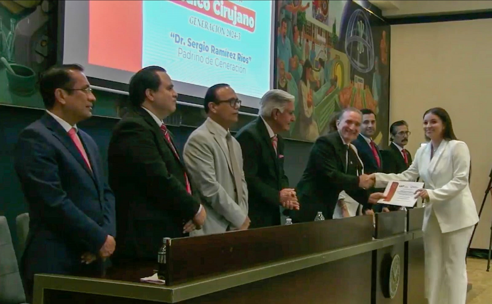 Resaltó el prestigio de la facultad, que recibe más de 1,400 aspirantes anualmente, y motivó a los nuevos médicos a continuar su formación mediante especialidades después de concluir con el año de internado y servicio social.