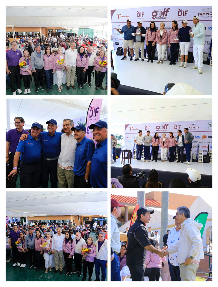 Al encabezar la ceremonia de premiación del Primer Torneo de Golf DIF Tampico 2025, acompañado por la presidenta del DIF Tamaulipas, doctora María de Villarreal, y por la presidenta municipal Mónica Villarreal Anaya, el gobernador destacó que este tipo de actividades y el respaldo económico que brindan es un ejemplo de cómo se puede seguir construyendo un mejor futuro a través de una sociedad participativa y colaborativa.