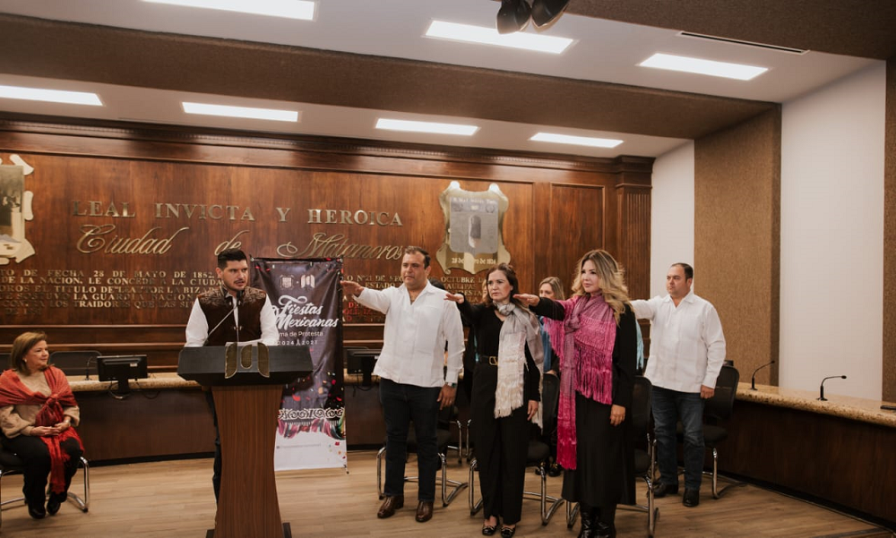 H. Matamoros. – En una emotiva ceremonia, el alcalde Alberto Granados Fávila tomó protesta al nuevo comité organizador de las Fiestas Mexicanas, reafirmando el compromiso de mantener vivas las tradiciones y costumbres que unen a Matamoros con su vecina ciudad de Brownsville.